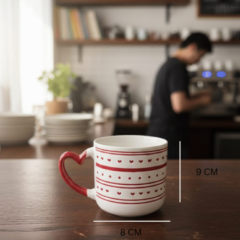 مج قلوب بيد قلب 310 مل – كوب سيراميك رومانسي مقاس 9×8 سم بتصميم قلوب مميز للهدايا