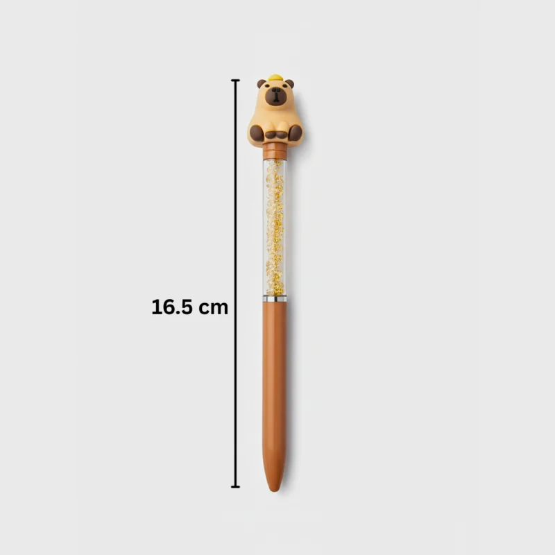 قلم جل أزرق شكل دب بني بجليتر متحرك بطول 16.5 سم – قلم كتابة كيوت للأطفال والطلاب