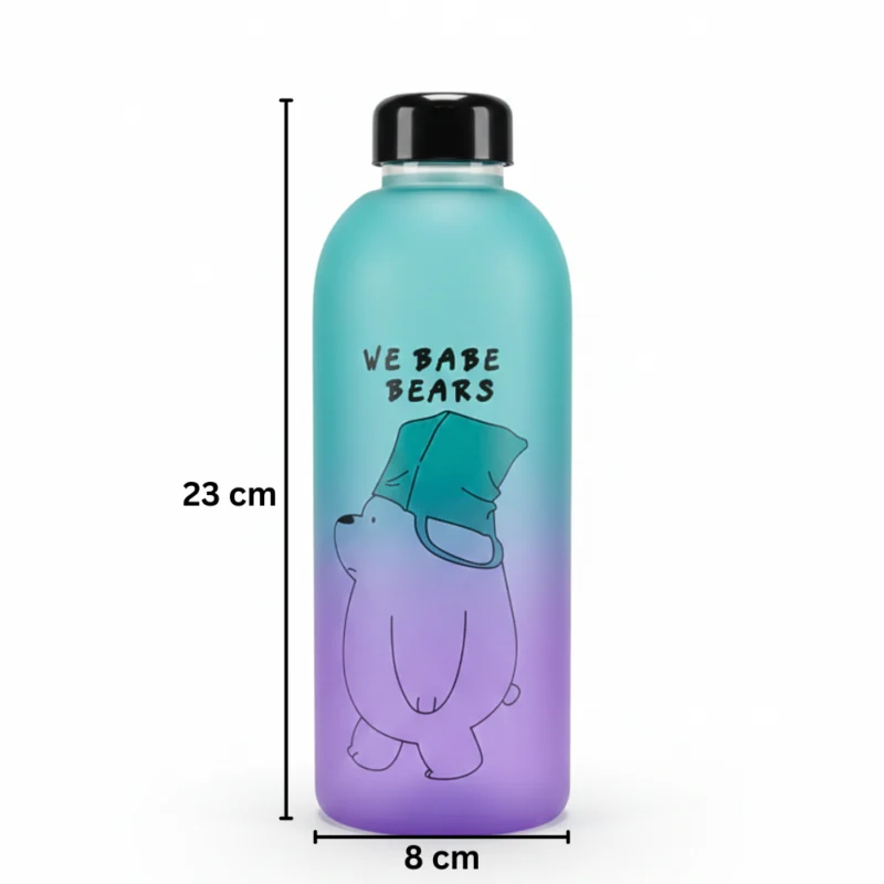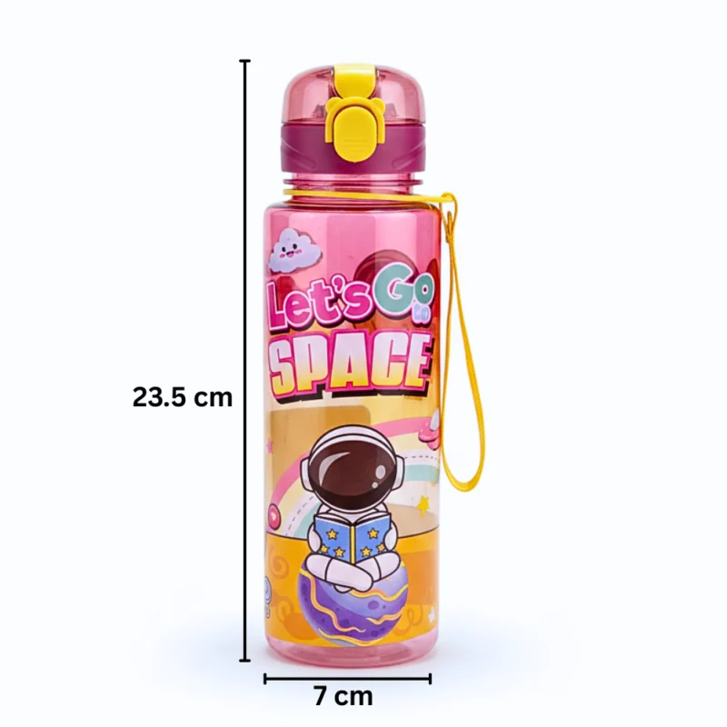 زجاجة مياه 1 لتر بلاستيك بتصميم كرتوني جذاب – 1000 مل بغطاء محكم ومقاس 23 سم