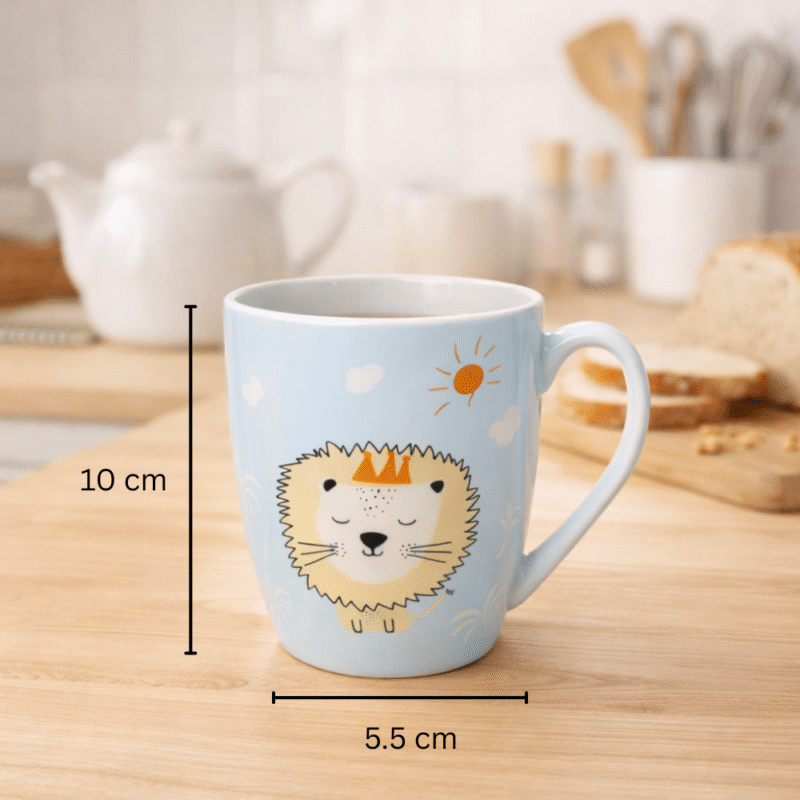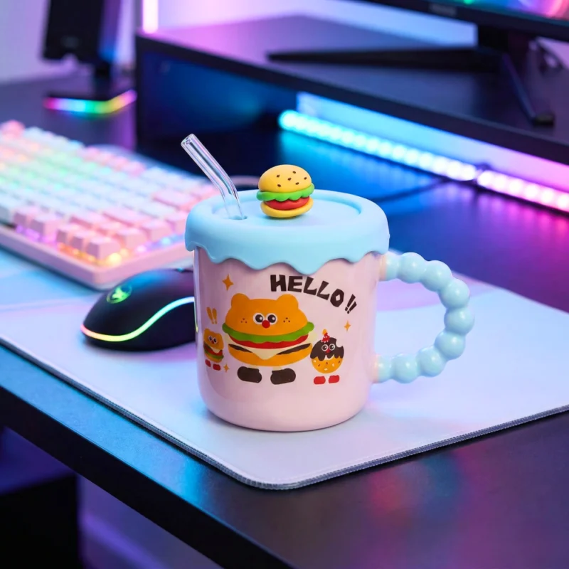 مج بورسلين 300 مل بتصميم كرتوني كيوت – كوب قهوة بغطاء وشاليموه – مناسب للمشروبات الساخنة والباردة