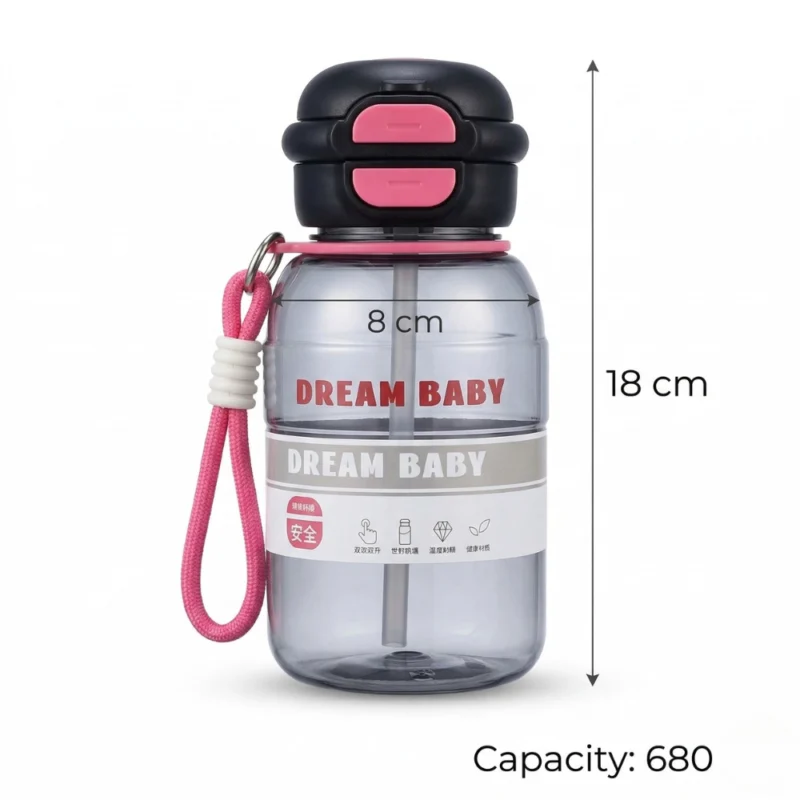 زجاجة مياه للأطفال بغطاء مزدوج وشفاط – سعة 680 مل بتصميم Dream Baby عملي للمدرسة والرياضة