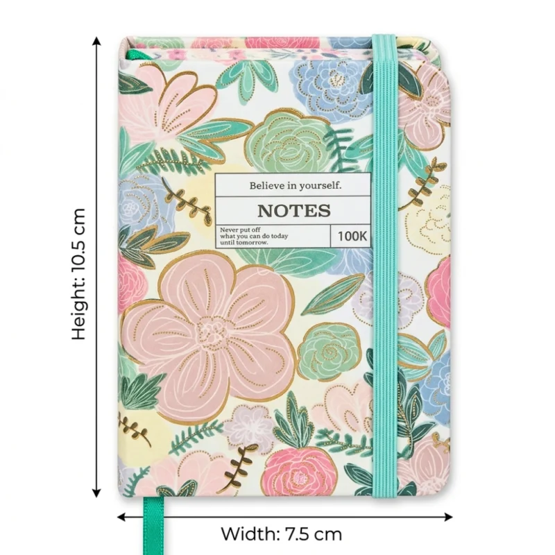 نوت بوك ميني هارد كوفر تصميم زهور ملونة صغير الحجم عملي وأنيق مقاس 10.5×7.5 سم