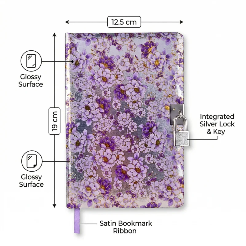 نوت بقفل 10×8 سم بتصميم ورود وفراشات – مفكرة صغيرة أنيقة وآمنة للتدوين اليومي