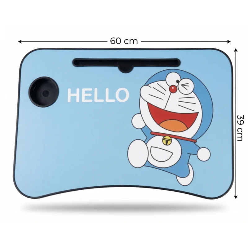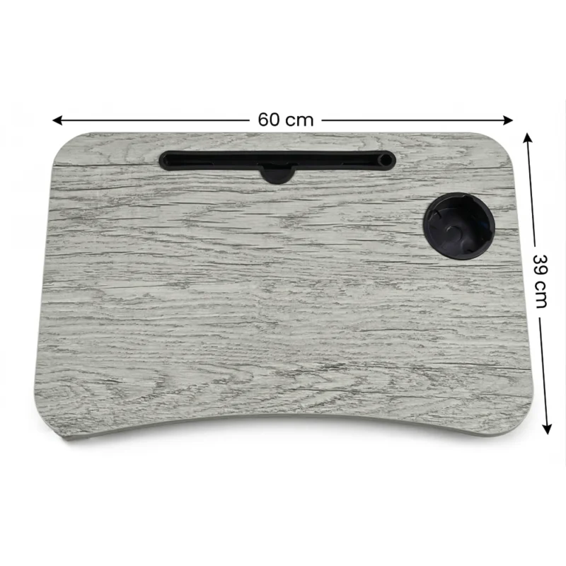 ترابيزة لاب توب محمولة لون رمادي خشبي 60×39 سم بفتحة موبايل وحامل كوب