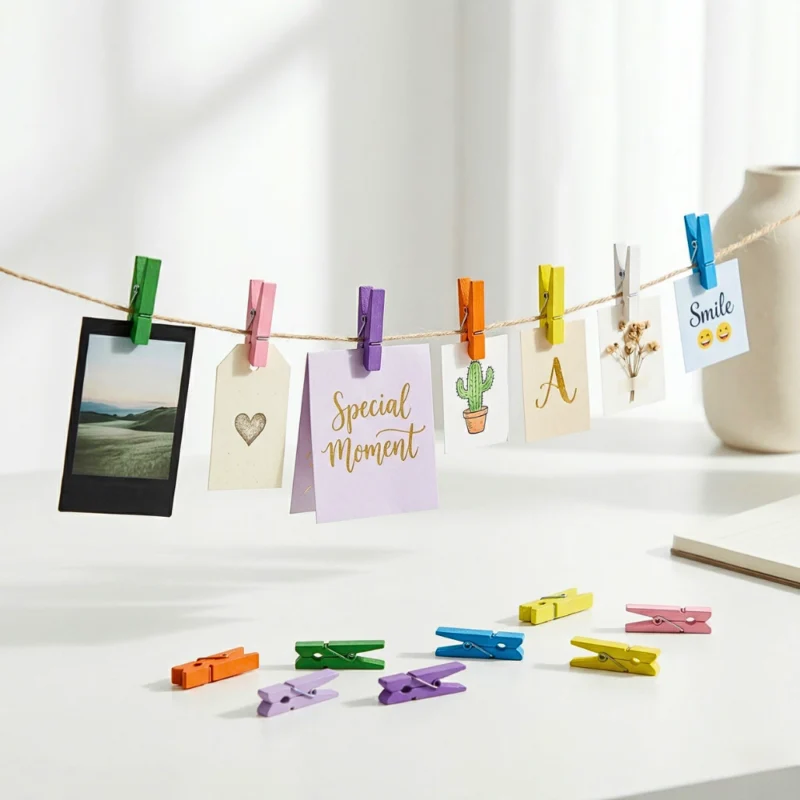 مشابك خشبية صغيرة بألوان قوس قزح – متعددة الاستخدام – 30 قطعة لتزيين الصور والهدايا والديكور