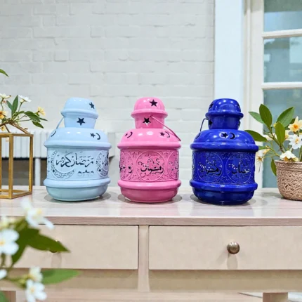 فانوس ايكيا معدن أزرق ديكوري – تصميم رمضاني أنيق بحجم 18 × 9 سم