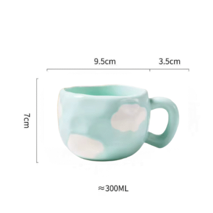 مج سحابي بورسلين مينت جرين– سعة 300 مل – تصميم السحاب المميز للمشروبات الساخنة والباردة