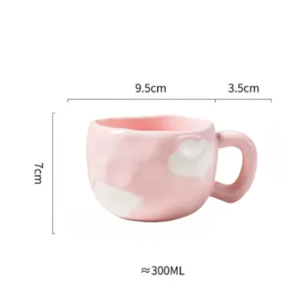 مج سحابي بورسلين بينك– سعة 300 مل – تصميم السحاب المميز للمشروبات الساخنة والباردة