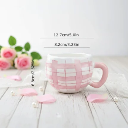 مج القلوب الوردية -300 مل – مج بورسلين بطابع رومانسي للمشروبات الساخنة والباردة