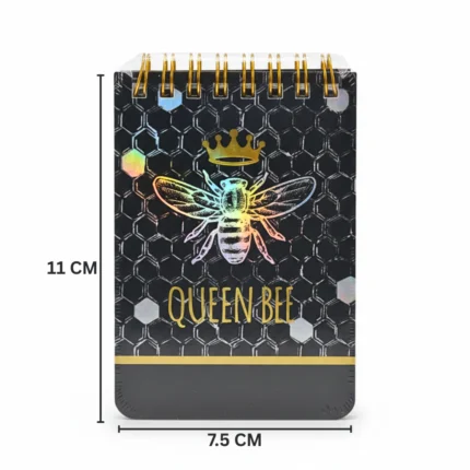 نوت بوك سلك صغيرة مقاس 11×7.5 سم لون أسود بتصميم Queen Bee الهولوجرام الأنيق