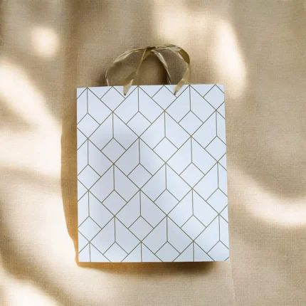شنطة هدايا ورقية بتصميم هندسي راقي – مناسبة للبوكسات مقاس 29.5 × 21.5 سم