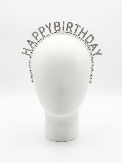 طوق شعر Happy Birthday فضي لامع 1 قطعة للحفلات وأعياد الميلاد