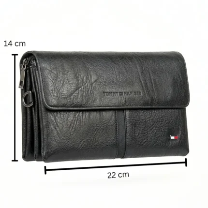 محفظة رجالي جلد طبيعي ماركة TOMMY أنيقة متعددة الجيوب مقاس 22×14 سم – لون أسود