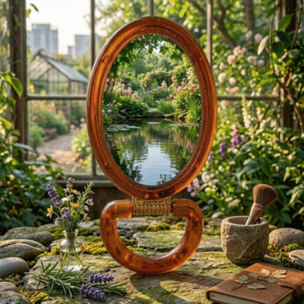 مراية عسلي بيضاوية 16×8 سم – مرآة يد أنيقة بتصميم كلاسيكي لون عسلي شفاف