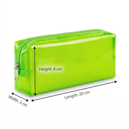 مقلمة شفافة أخضر فلورسنت بلاستيك مقاومة للماء – شنطة أقلام بسحاب بمقاس 20×8×3 سم