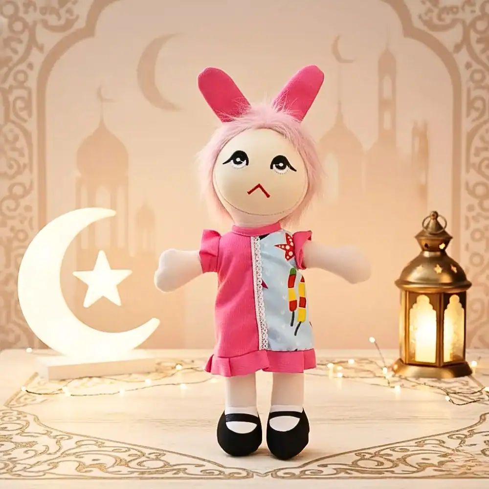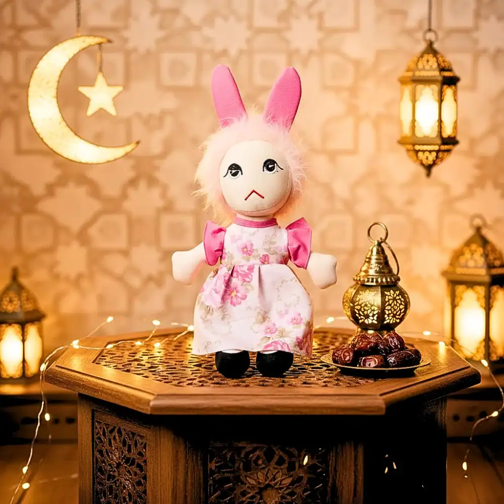 سواء كان البيت ديكوره بسيط أو مليان زينة رمضانية، الدمية بتندمج بسهولة مع المكان. شكلها اللطيف وألوانها الهادية يخلوها مناسبة: