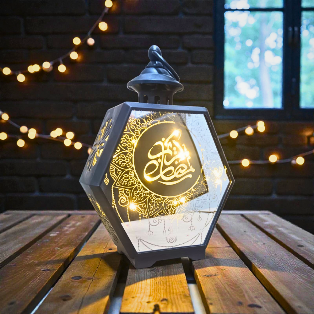 هنا بييجي دور فانوس رمضان ديكوري مضيء اللي يجمع بين الشكل التراثي الجميل واللمسة العصرية اللطيفة.