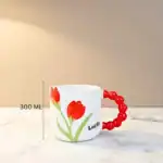 مج بابلز بورسلين بتصميم زهرة التوليب الحمراء ، مج أنيق وفخم للاستخدام اليومي، مصنوع من بورسلين عالي الجودة، بسعة 300 مل، مثالي لتقديم القهوة والشاي والمشروبات الساخنة، ويضيف لمسة جمالية ناعمة لأي مطبخ أو مكتب.