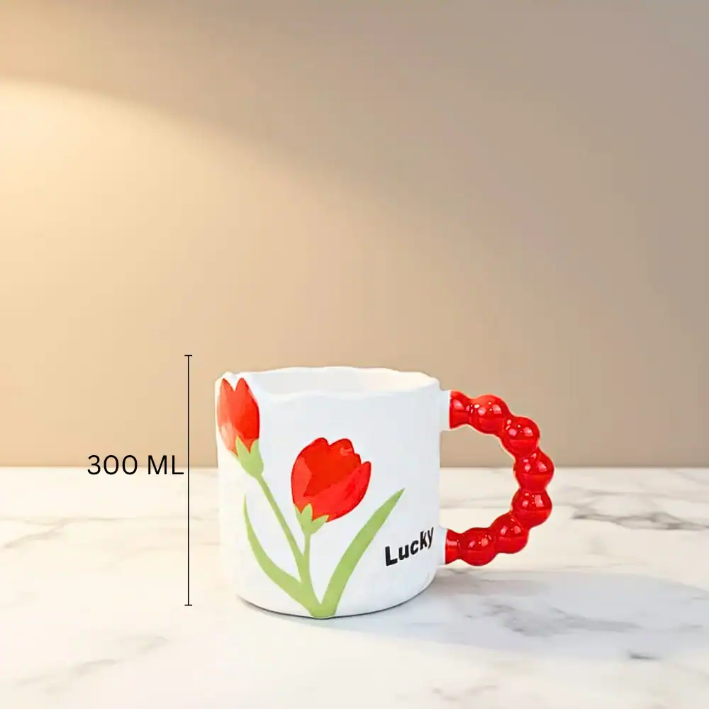 مج بابلز بورسلين بتصميم زهرة التوليب الحمراء– مج فخم للاستخدام اليومي بسعة 300 مل