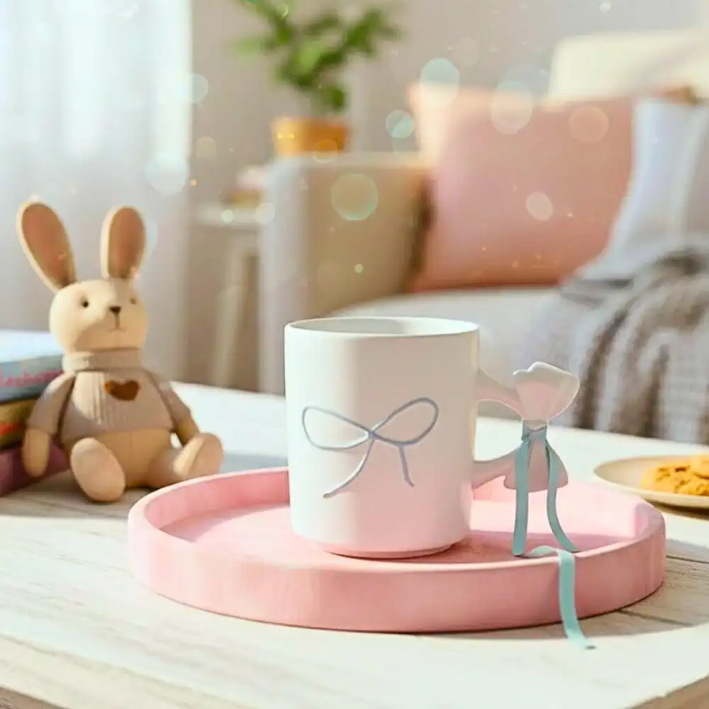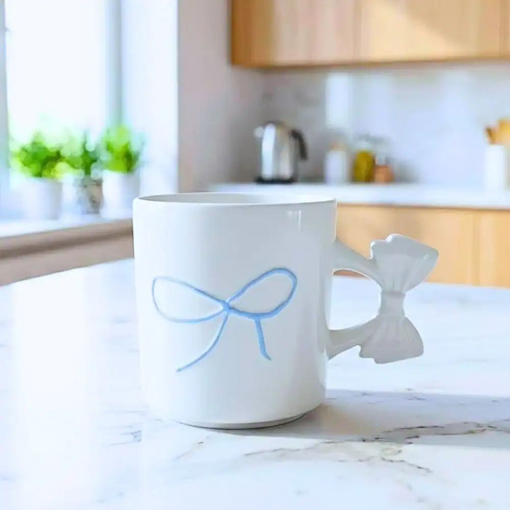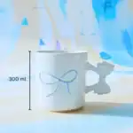 خامة بورسلين عالية الجودة سعة مثالية 300 مل تصميم فيونكة ثلاثي الأبعاد جذاب ألوان هادئة وعصرية مناسب للقهوة، الشاي، والمشروبات اليومية اختيار رائع للهدايا والمناسبات |