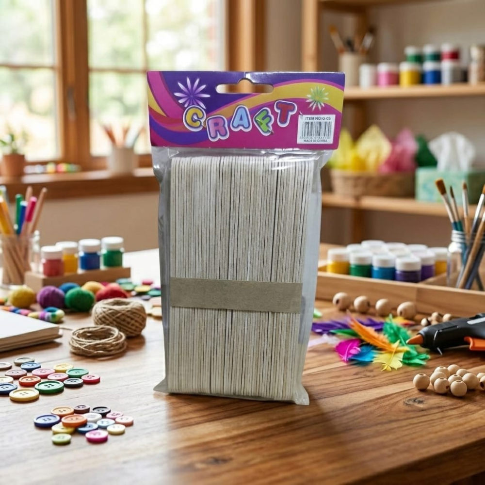 مصنوعة من خشب طبيعي بلون كرافت هادئ، تتميز الأعواد بسطح أملس خالٍ من الشظايا، مما يجعلها آمنة للاستخدام في الأنشطة المدرسية. يمكن استخدامها في: