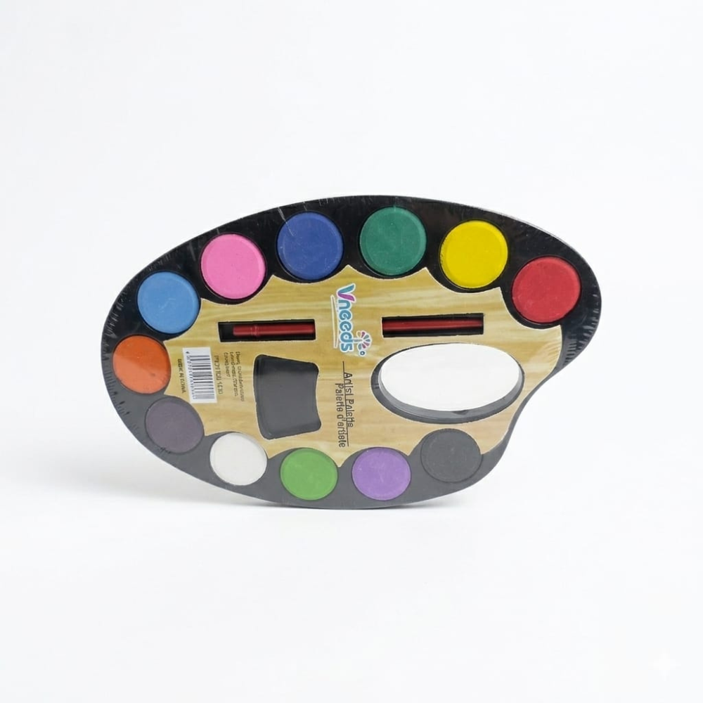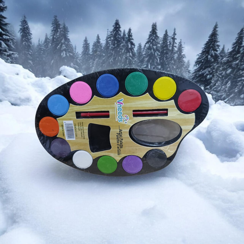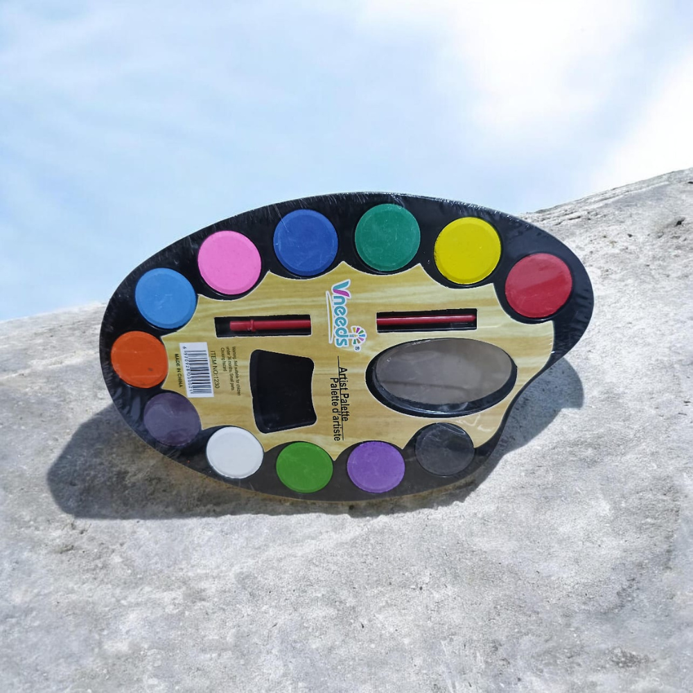 بالته الوان مياه خشبية بتصميم مميز على شكل لوحة فنية، تحتوي على 12 لونًا مائيًا زاهيًا مع فرشاة مرفقة، مثالية للأطفال والهواة في المدرسة أو المنزل. سهلة الاستخدام، آمنة، وتمنح تجربة رسم ممتعة تساعد على تنمية الإبداع والمهارات الفنية.