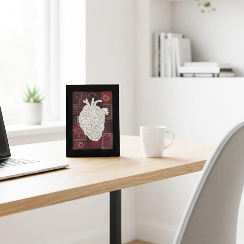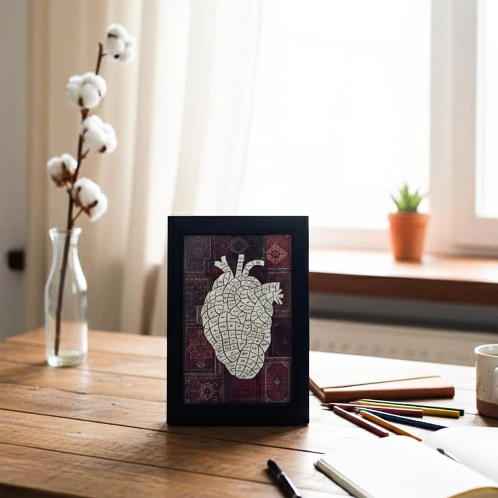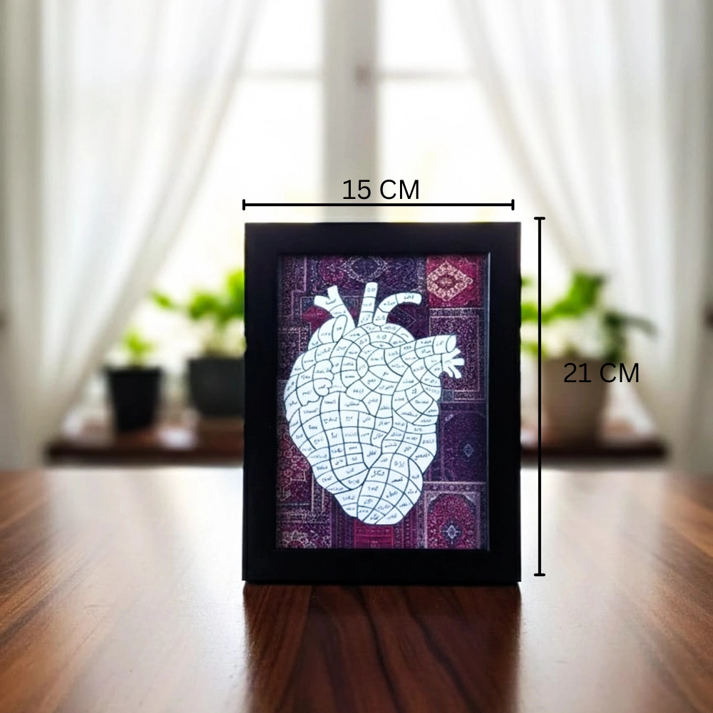 تم تصنيع بخامات مختارة بعناية لضمان المتانة وطول العمر. الإطار الأسود يتميز بلمسة نهائية أنيقة تقاوم التغيّر مع الوقت، بينما تثبيت النص داخل البرواز يتم بشكل يحافظ على شكله وجودته.