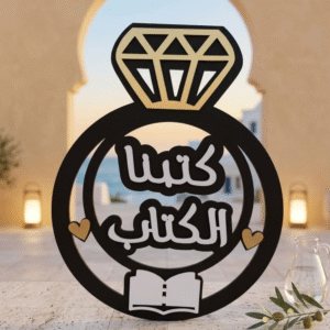 تارة خشب كتب الكتاب 37×30 سم – ديكور خطوبة مميز بتصميم خاتم أنيق