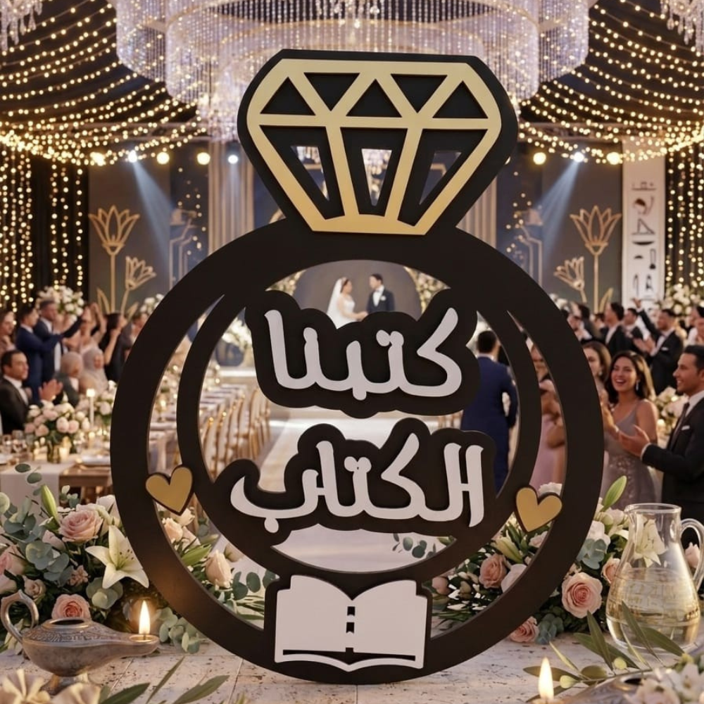 في المناسبات الخاصة، لا يكون الاهتمام فقط بالملابس أو المكان، بل إن التفاصيل الديكورية الصغيرة هي التي تصنع الانطباع الأكبر. وجود قطعة ديكور خشبية أنيقة بهذا التصميم يمنح أجواء كتب الكتاب لمسة راقية تضيف للمكان إحساسًا بالفخامة والرومانسية.
