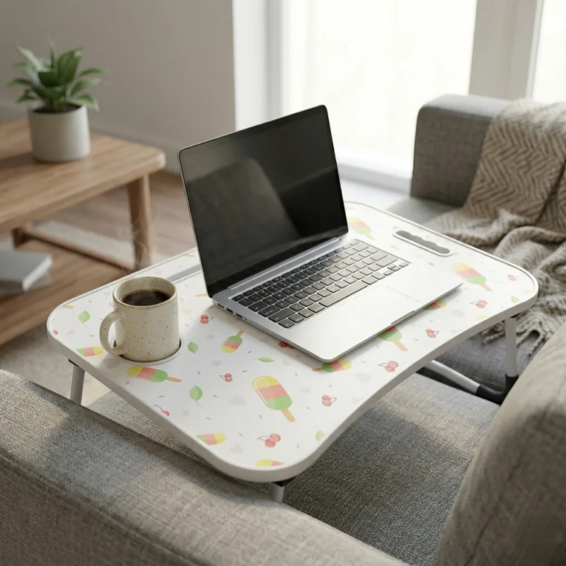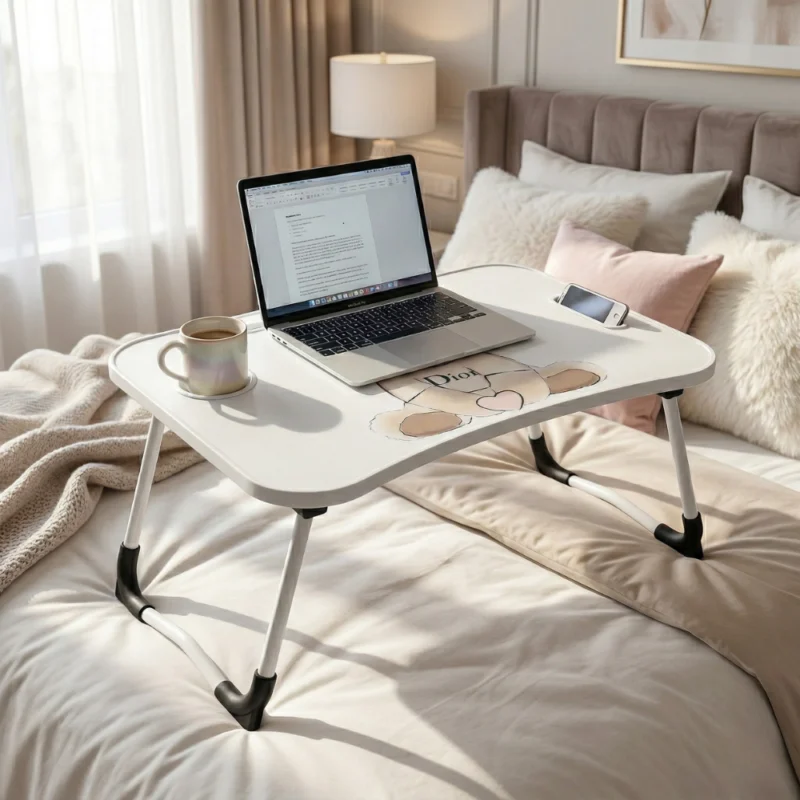 هذا النوع من الترابيزات يستخدم بشكل واسع كـ bed desk أو lap desk لتوفير الراحة أثناء العمل في السرير أو على الأريكة.