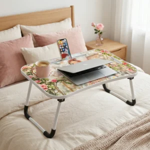 تتميز هذه ترابيزة لابتوب بتصميم عصري أنيق يناسب جميع الأذواق، مع رسمة بناتية رقيقة مزينة بالورود والألوان الهادئة التي تضيف لمسة جمالية مميزة لأي غرفة.
