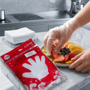 في المطبخ، يمثل عنصرًا أساسيًا أثناء تحضير الوجبات، خاصة عند التعامل مع المكونات التي قد تترك روائح قوية أو آثارًا على اليدين. سواء كنتِ تقومين بتتبيل الدجاج، تقطيع الأسماك، تجهيز السلطات، أو إعداد المعجنات، فإن استخدامه يمنحك راحة أكبر أثناء العمل.