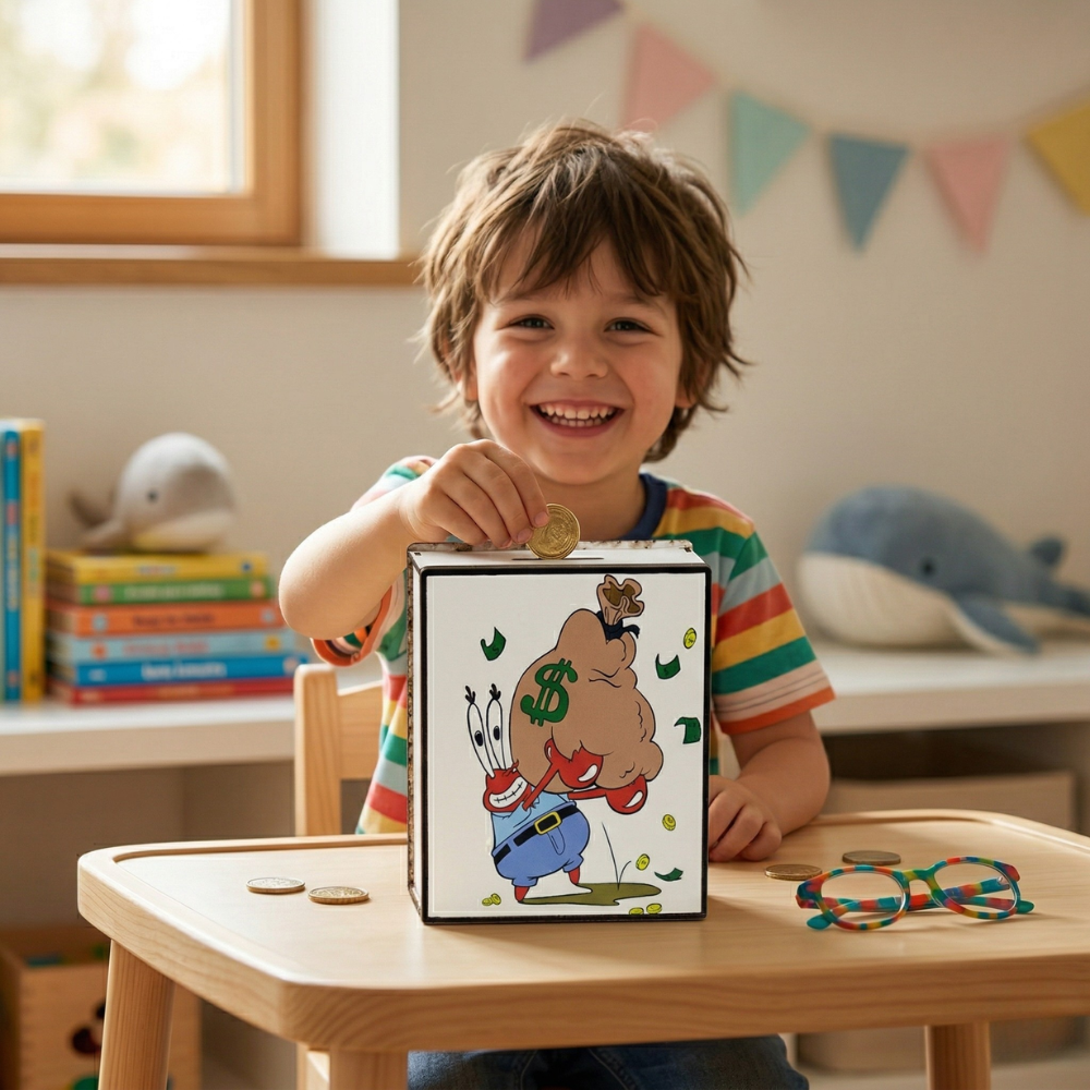 هذه الحصالة ليست مجرد صندوق لحفظ المال، بل هي تجربة متكاملة تساعدك على تغيير سلوكك المالي بطريقة تدريجية وفعالة. ومع التصميم الكرتوني الجذاب، تصبح تجربة الادخار ممتعة للأطفال والكبار على حد سواء.