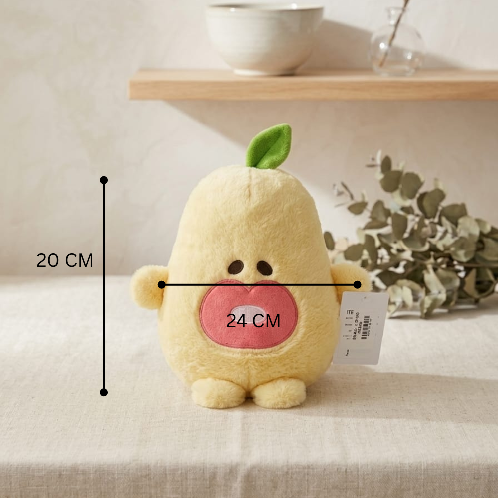 وجود دمية أفوكادو قطيفة في المكان يضيف لمسة لطيفة ومرحة.