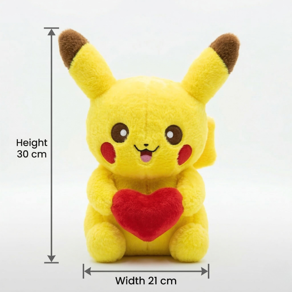 دمية بيكاتشو فرو ناعمة مع قلب أحمر – حجم 30 سم × 21 سم
