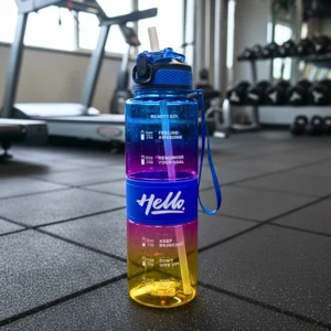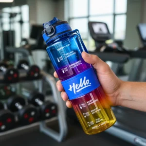 تتميز زجاجة مياه 1000 مل بتدرج ألوان عصري يمنحها مظهرًا حيويًا ومميزًا. التصميم الملون يجعلها مناسبة للكبار والصغار، للطلاب، الموظفين، والرياضيين.