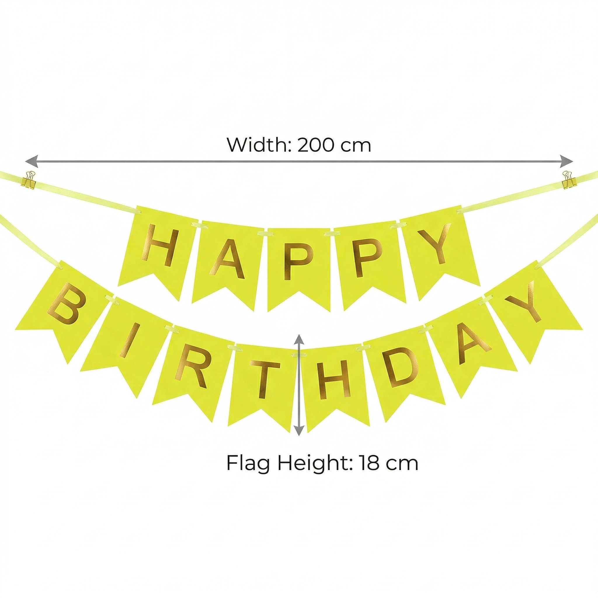 زينة عيد ميلاد Happy Birthday لون أصفر ليموني بكتابة ذهبية مقاس 200 × 18 سم