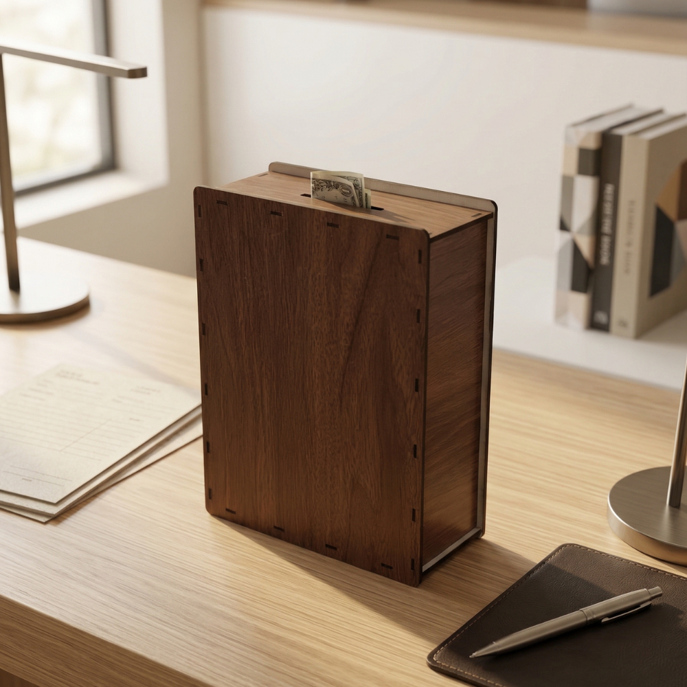 يتميز هذا صندوق توفير بتصميم خشبي أنيق يعكس الذوق العصري، حيث تم تصنيعه بعناية ليمنحك منتجًا يجمع بين الجمال والمتانة. اللون الخشبي الطبيعي يعطيه لمسة فاخرة تجعله مناسبًا لأي مكان، سواء في المنزل أو المكتب.