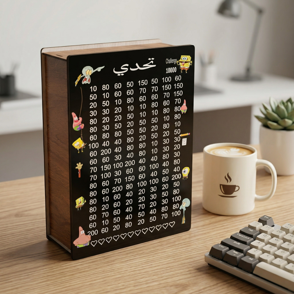 صندوق توفير حصالة تحدي 10000 خشب فاخر – مقاس 29×20×8 سم – أفضل وسيلة للادخار وتحقيق الأهداف المالية