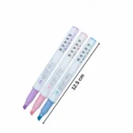 يبلغ طول القلم 12.5 سم، وهو طول مثالي يمنحك تحكمًا مريحًا أثناء الاستخدام. هذا المقاس يجعل طقم أقلام تحديد هيلايتر سهل الحمل داخل المقلمة أو الحقيبة المدرسية أو حتى حقيبة العمل دون أن يشغل مساحة كبيرة.