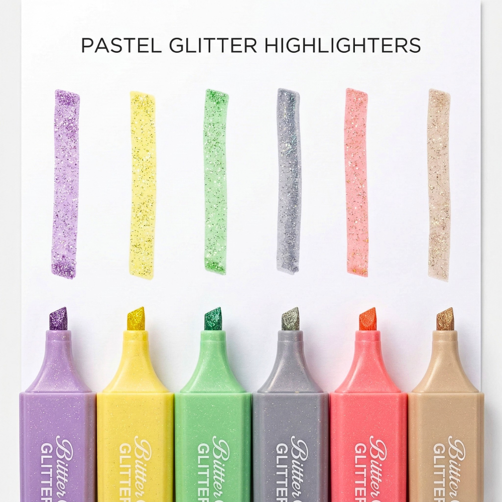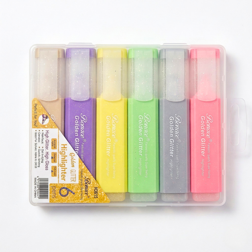 طقم أقلام هايلايتر جليتر 6 ألوان باستيل – أقلام تظليل لامعة للمذاكرة والدفاتر