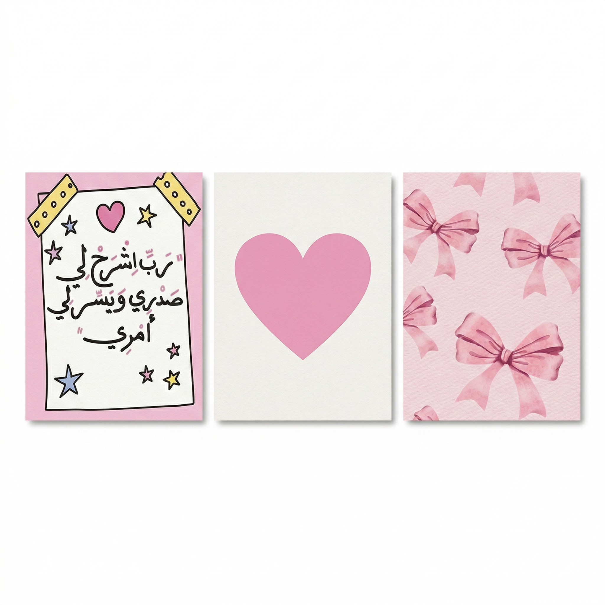 إذا كنت ترغبين في إضافة لمسة رقيقة وناعمة، فإن طقم بوسترات باللون الوردي مع تصميمات القلوب، الفيونكات، والعبارات اللطيفة يعد خيارًا رائعًا جدًا.