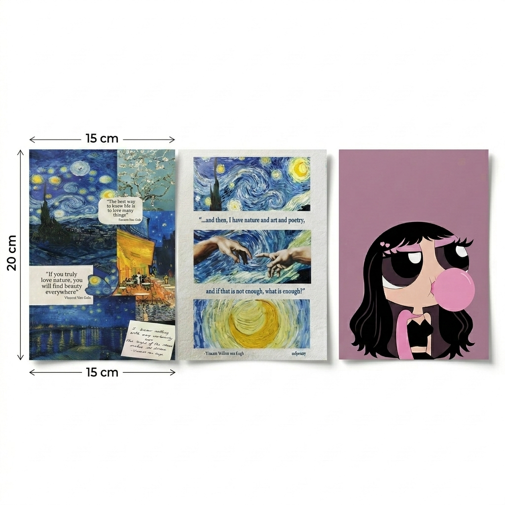 طقم بوسترات ديكور حائط 3 قطع 15×20 سم – تصميمات بناتي وشبابي وفني