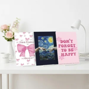 مع طقم بوسترات يمكنك بسهولة تحويل أي حائط بسيط إلى مساحة تنبض بالحياة، سواء كنت تفضلين التصميمات الهادئة والرقيقة أو التصميمات الشبابية الجريئة.