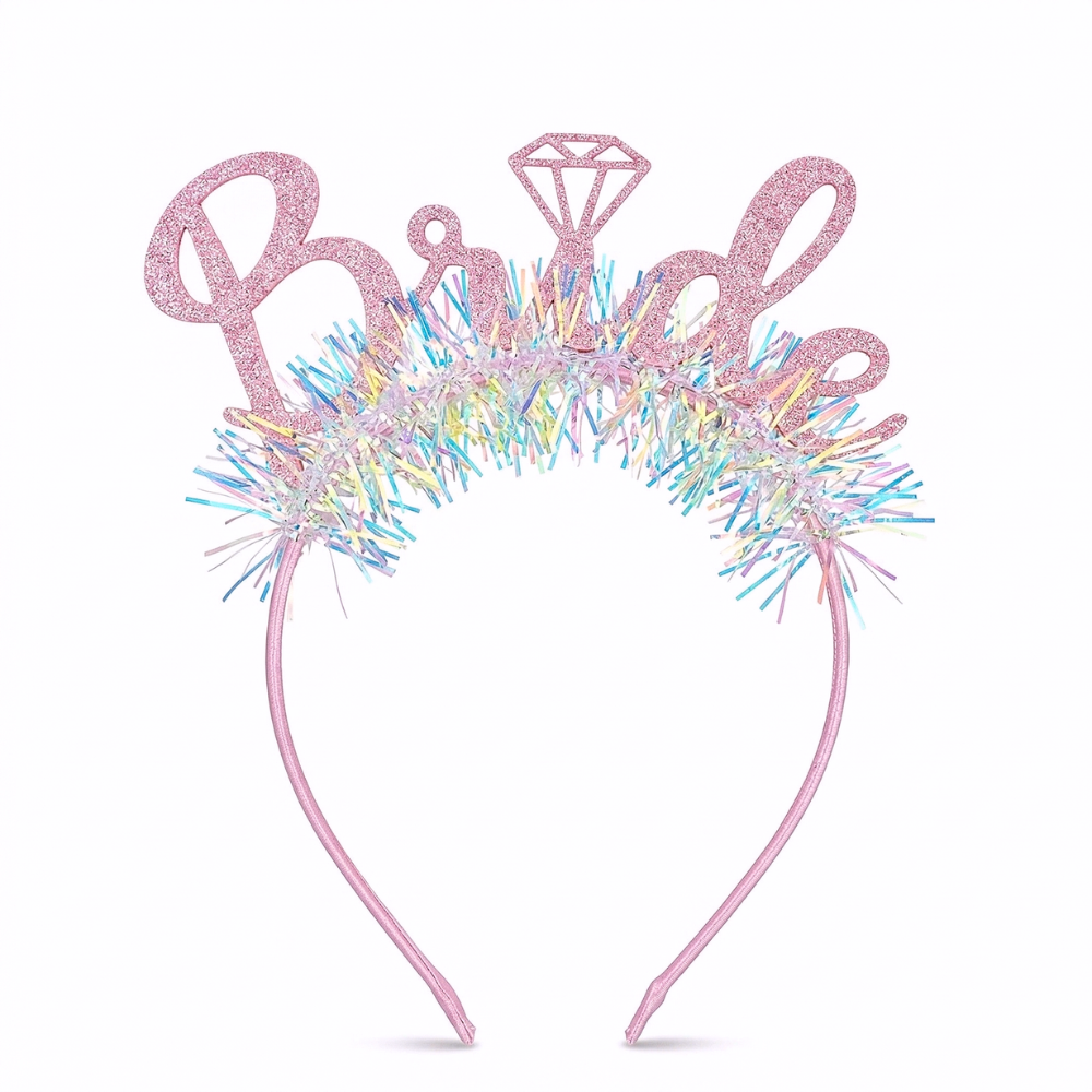 طقم Bride وردي جليتر 2 قطعة – نظارة + هيد باند للعروسة بإكسسوارات حفلات مميزة