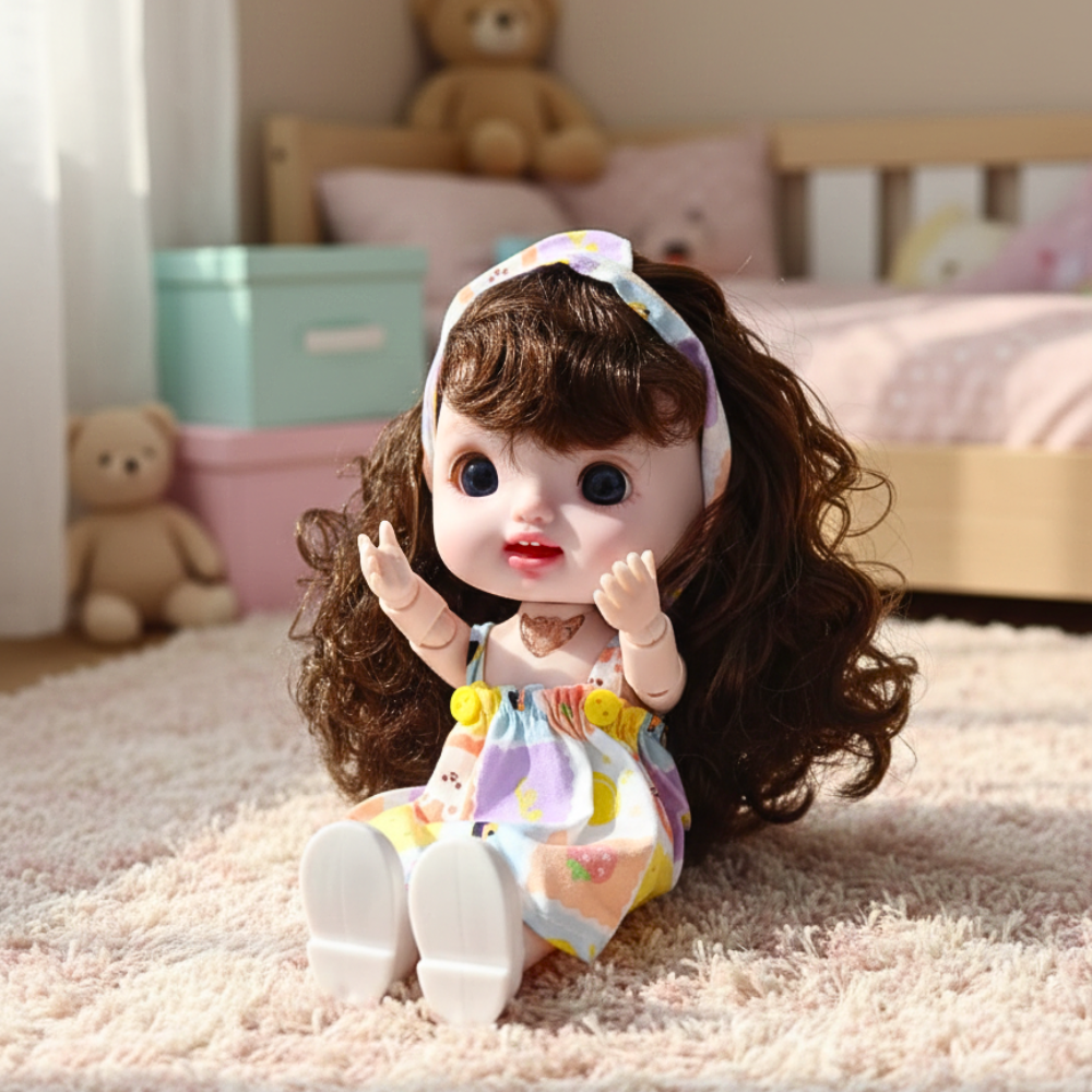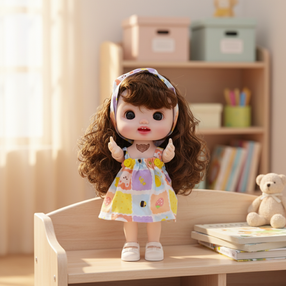 عندما تمسك الطفلة بهذه القطعة الصغيرة بين يديها، تبدأ فورًا في اكتشاف تفاصيلها الدقيقة. من ملمس الشعر الكيرلي إلى نعومة القماش المستخدم في الفستان، كل عنصر يمنح إحساسًا واقعيًا يزيد من متعة اللعب. التفاصيل الصغيرة دائمًا ما تصنع الفارق الكبير، وهذا ما يجعلها تبدو أقرب إلى شخصية حقيقية وليست مجرد لعبة تقليدية.