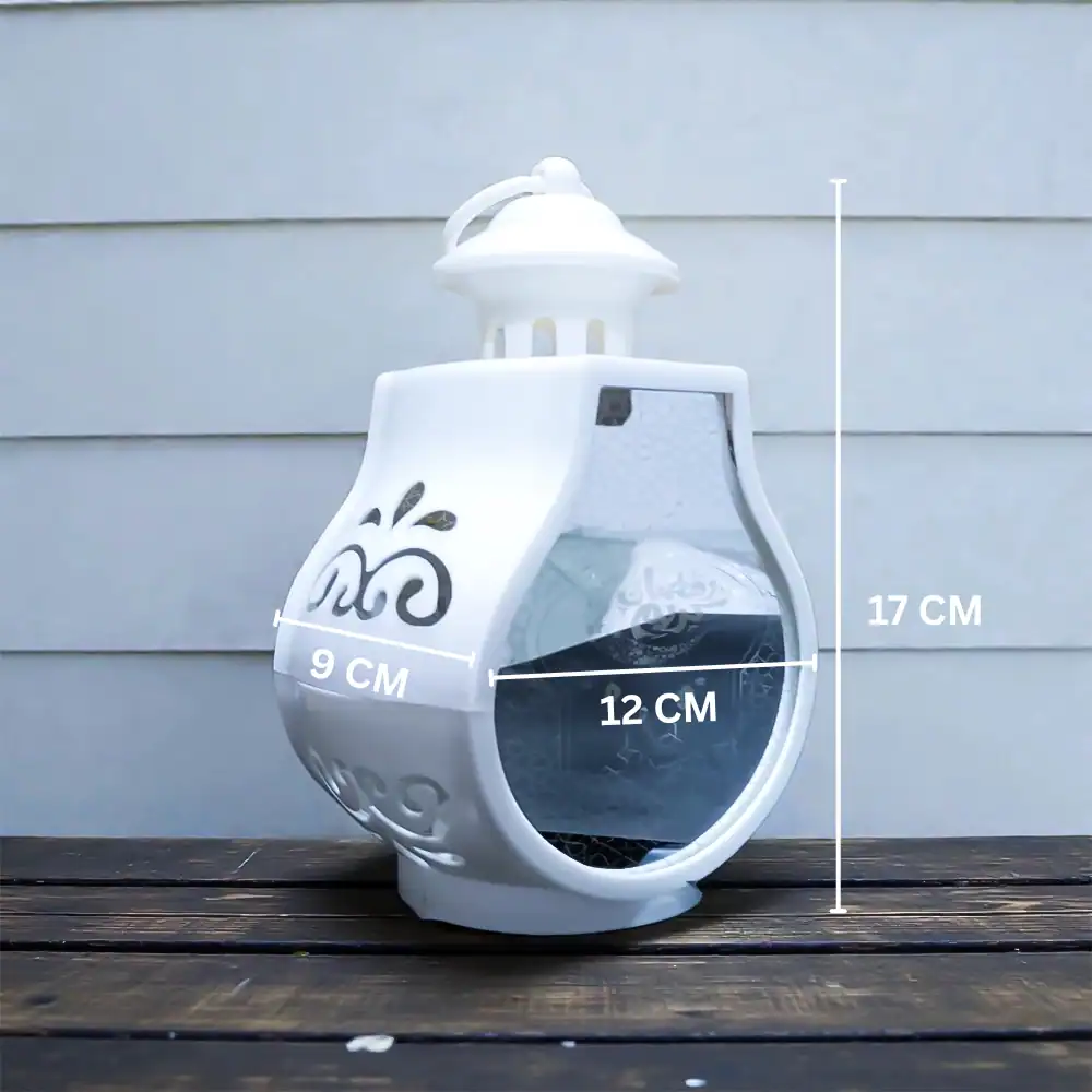 فانوس تركي أكريليك بيضاوي متوسط الحجم لون أبيض – 17×12 سم
