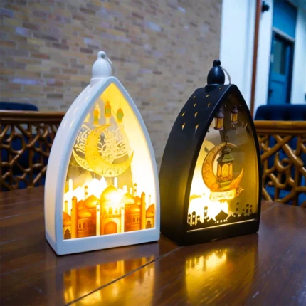وجود قطعة ديكور مضيئة بتصميم إسلامي داخل المنزل يغيّر الإحساس بالمكان بالكامل، خاصة خلال شهر رمضان. الإضاءة الدافئة المنبعثة من هذا الفانوس تضيف شعورًا بالطمأنينة والسكينة، وتخلق أجواء روحانية تساعد على الاسترخاء بعد يوم طويل من الصيام. الضوء ليس حادًا أو مزعجًا، بل ناعم ومريح للعين، ما يجعله مناسبًا للاستخدام اليومي في المساء أو أثناء جلسات السحور.