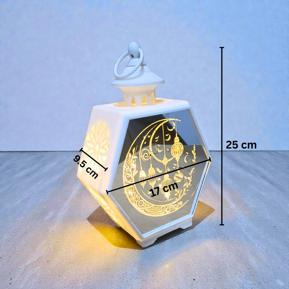• الإضاءة: يعمل بإضاءة LED دافئة تمنح وهجًا مريحًا وناعمًا يضفي لمسة رمضانية ساحرة.