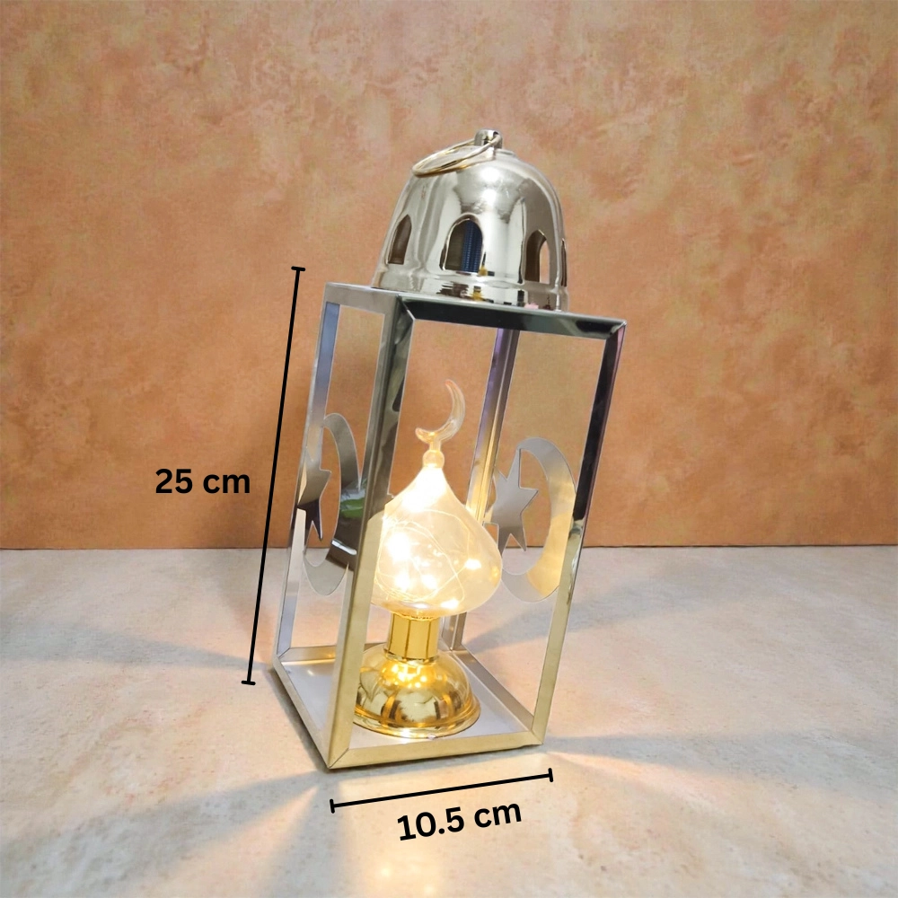 من أهم مميزات هذا فانوس رمضان أن حجمه 25 × 10.5 سم يجعله مناسبًا جدًا للمساحات الصغيرة. يمكن وضعه: